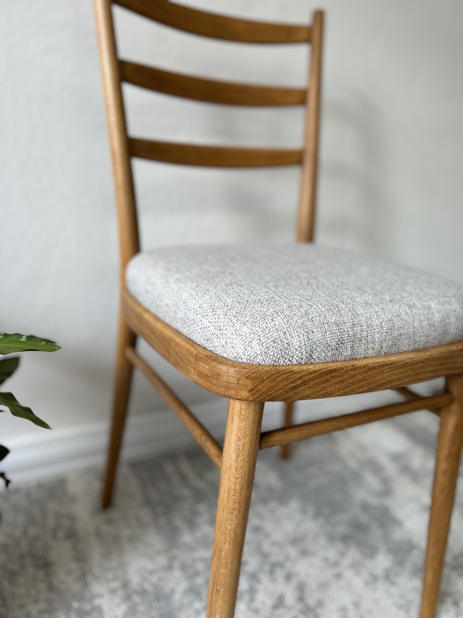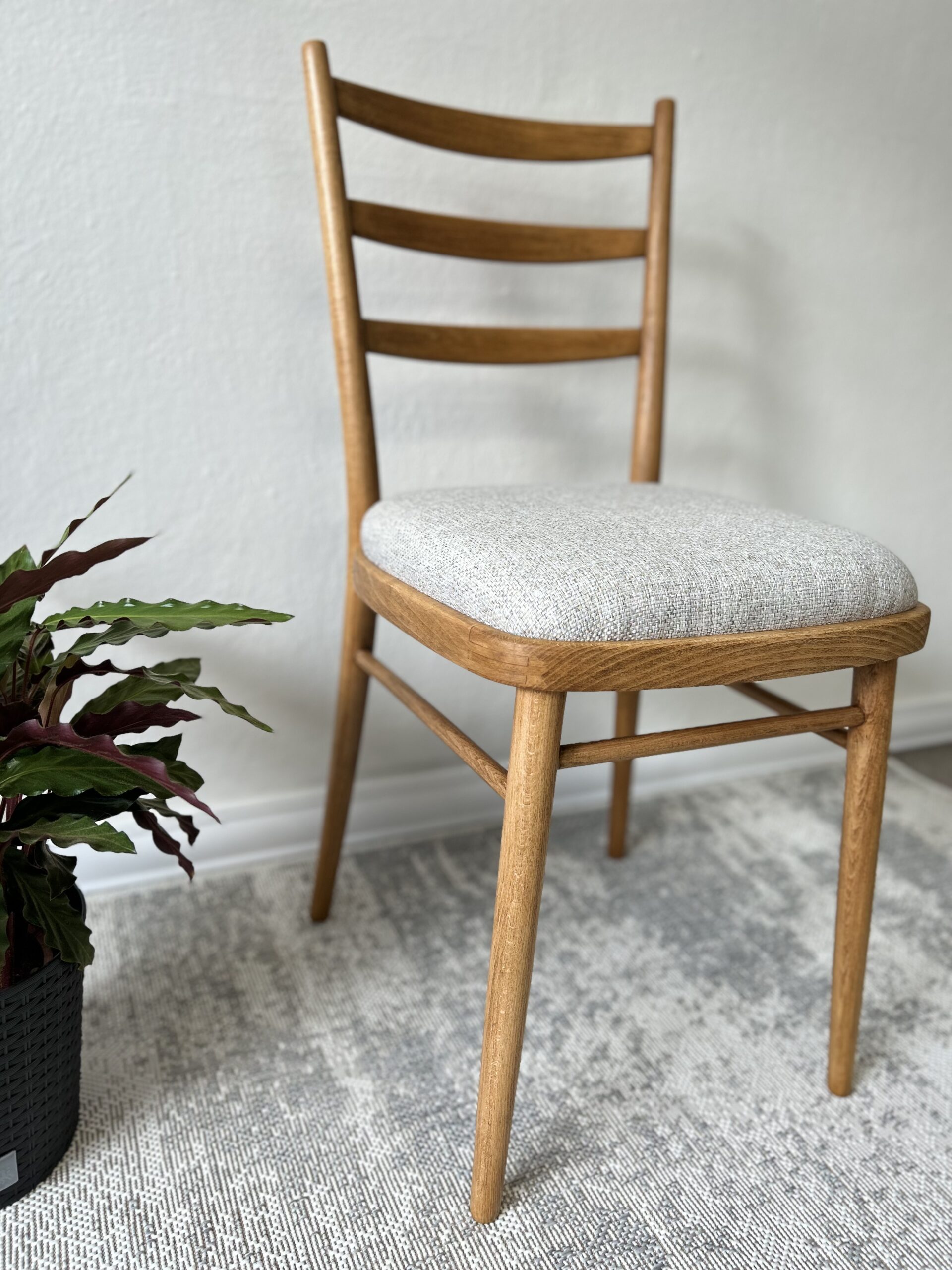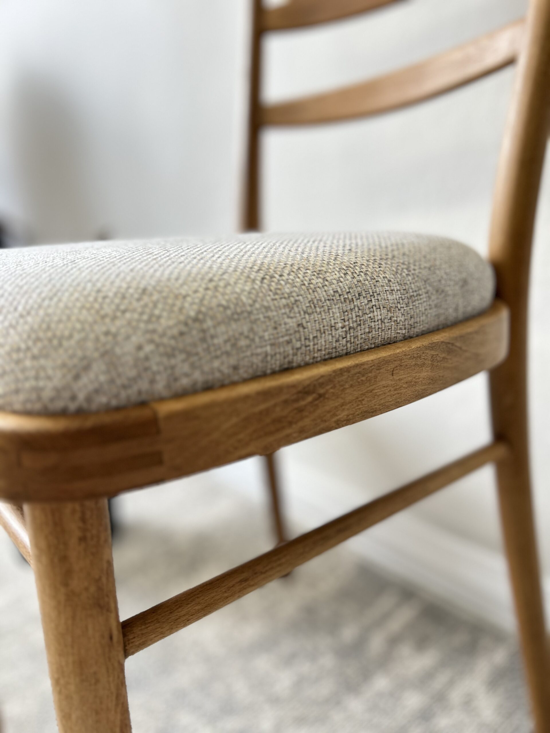Poťahovú látku sme spoločne s klientkou starostlivo vyberali tak, aby dokonale ladila s odtieňom dreva a celkovým štýlom jej domácnosti.